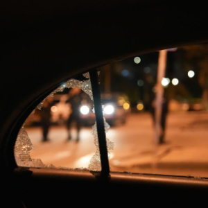 这是12月27日在以色列北部谢莫纳镇拍摄的在火箭弹袭击中受损的车辆。