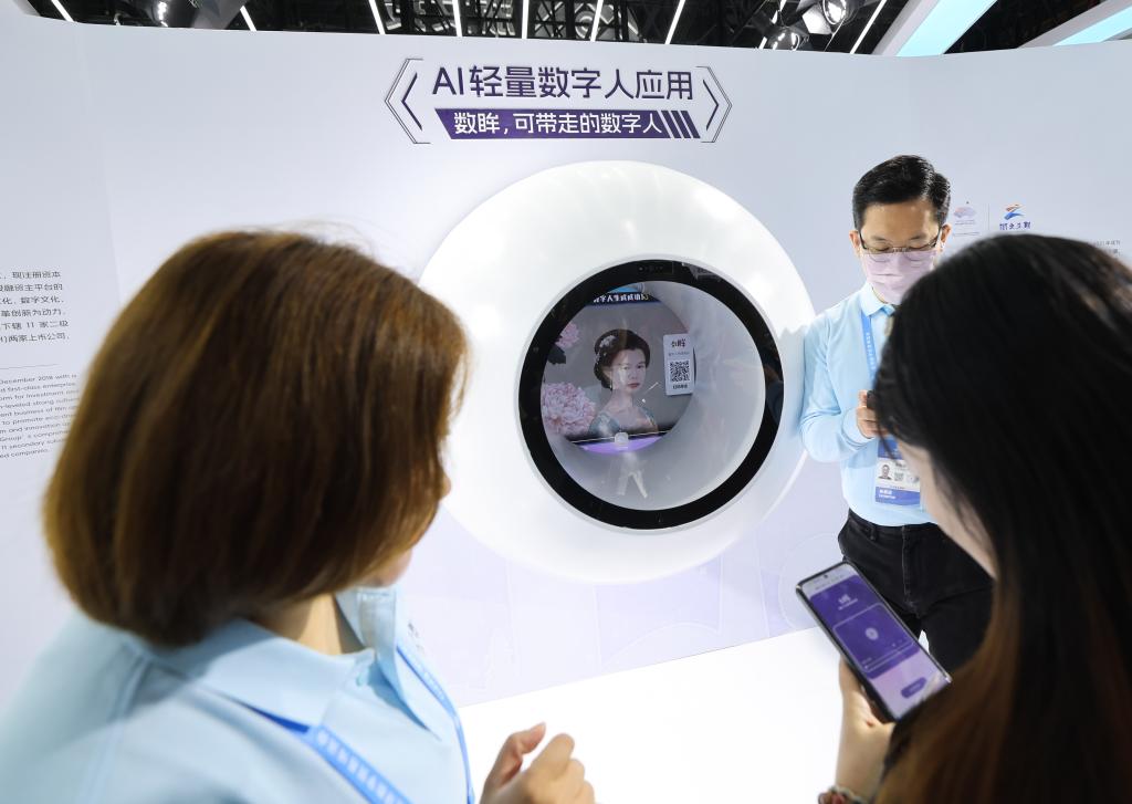2023年11月23日,参观者在第二届全球数字贸易博览会上体验数字人应用。新华社记者徐昱摄