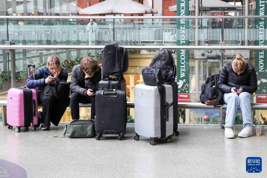 12月30日,旅客滞留在英国伦敦圣潘克勒斯火车站。