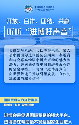 不少嘉宾和展商纷纷表示,进博会是中国坚定推进高水平开放的缩影,有力推动世界分享中国大市场、共享中国新机遇,让合作共赢惠及世界。
