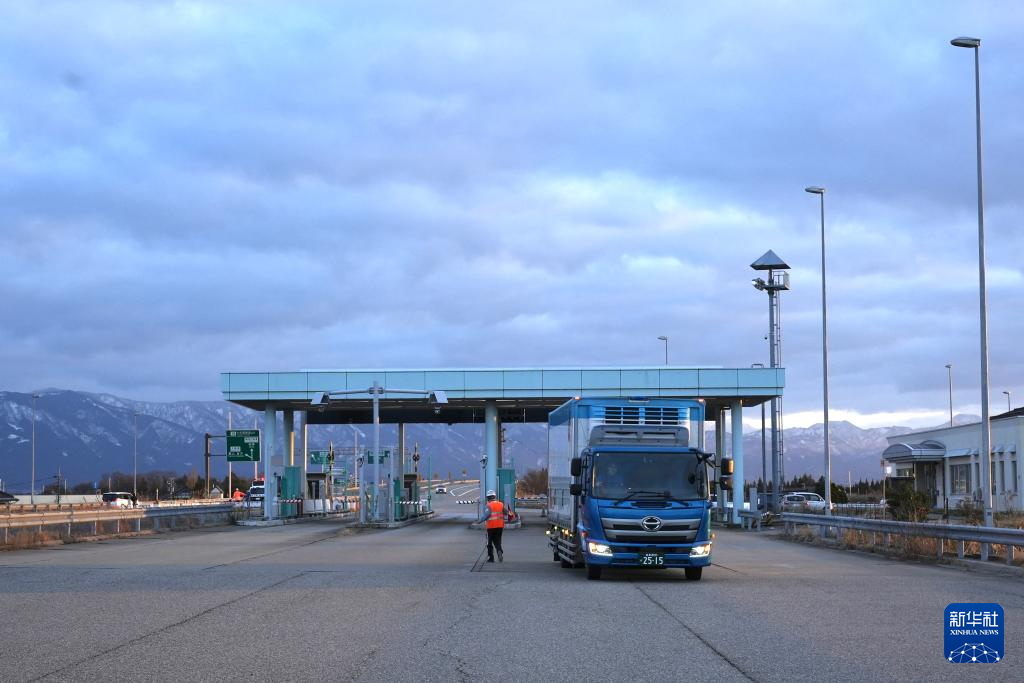 1月1日,汽车停在日本富山县小矢部市的高速出口处,等待新的消息。