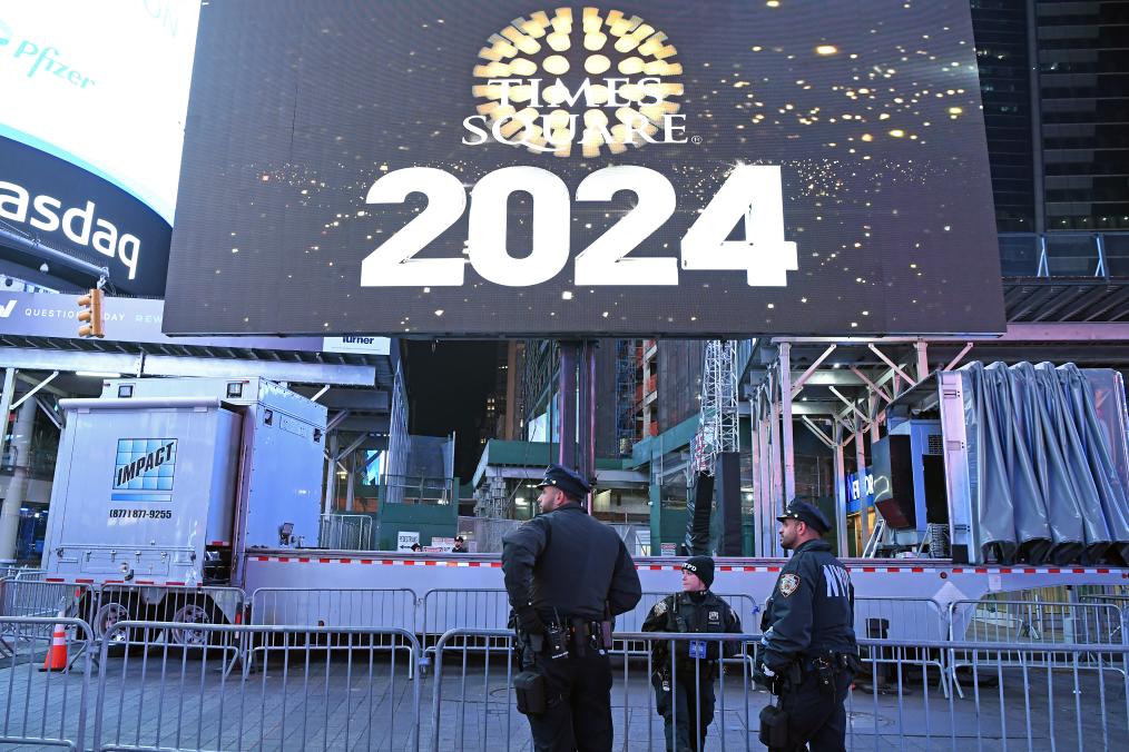 2023年12月31日,警察在美国纽约时报广场警戒。新华社记者李睿摄