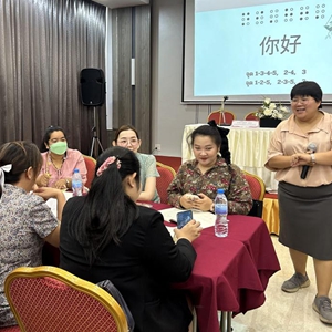 在泰国芭提雅,泰国盲校教师和中文教师参加由泰国盲人协会组织的中文盲文教材培训(2023年7月23日摄)。