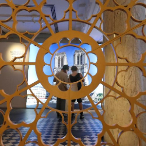 ↑2022年,人们在上海参观巴黎圣母院增强现实感沉浸式展览。展览用科技重建了“数字孪生”的巴黎圣母院,观众在现场可以通过视频解说、全景观览、互动游戏等方式,沉浸式了解巴黎圣母院的重大历史瞬间、建筑工艺细节和兴建修缮场景等内容。