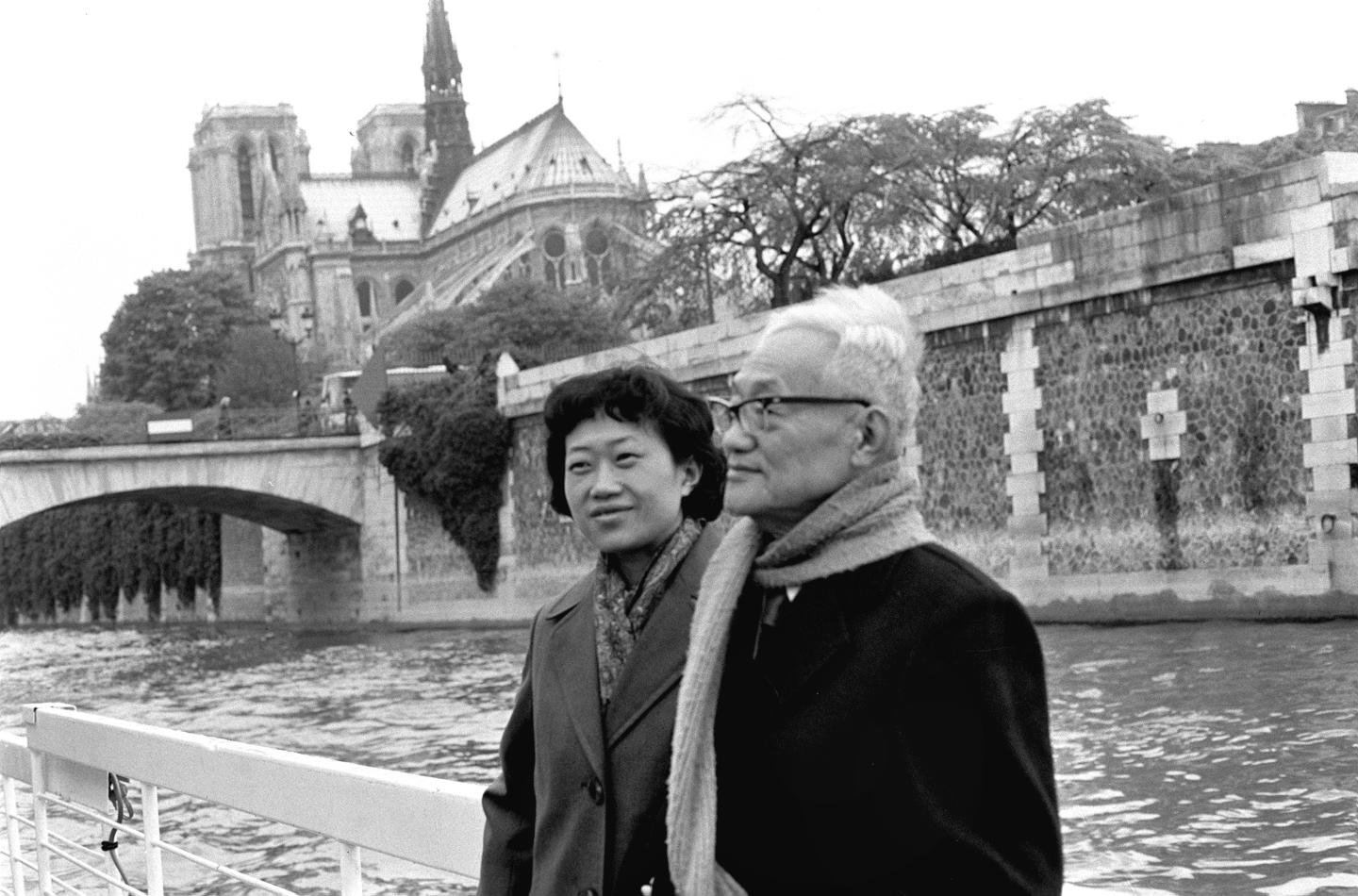 ↑1979年,中国作家代表团访问巴黎期间,著名作家巴金和女儿李小林在巴黎圣母院附近的塞纳河上留影。
