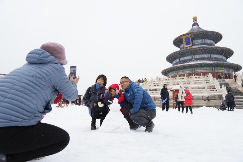 ↑中法双方嘉宾共同为天坛和巴黎圣母院冰雕揭幕