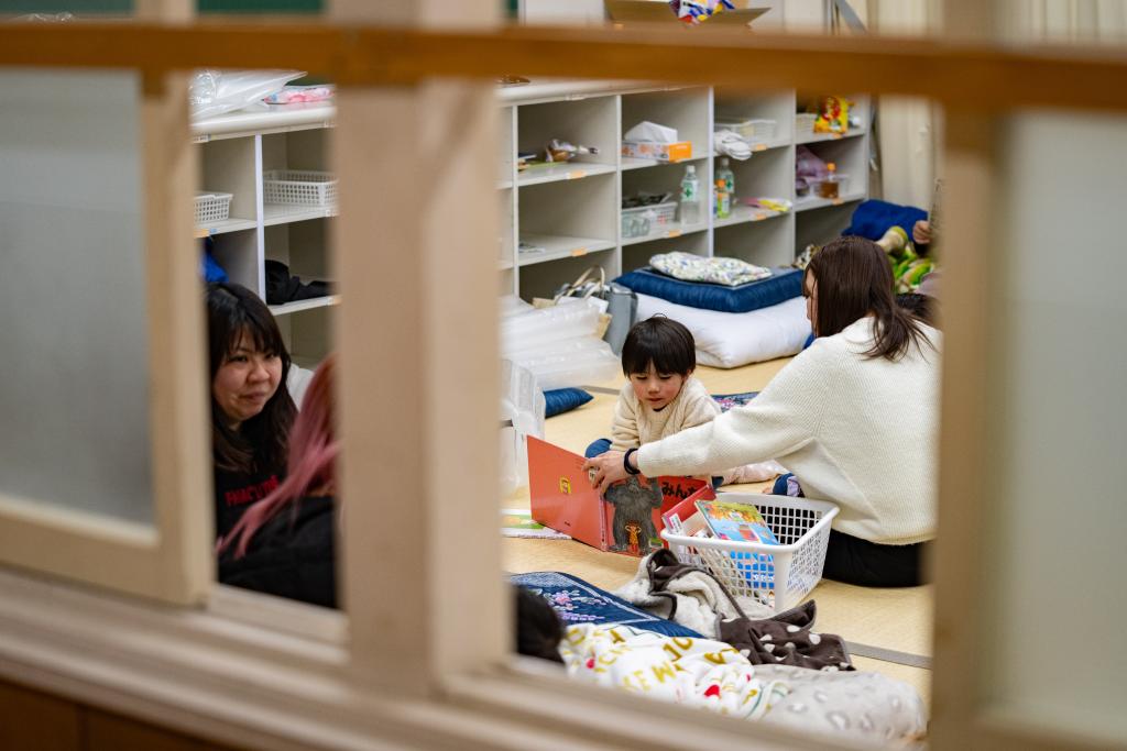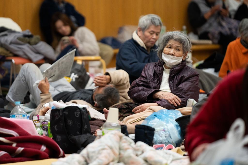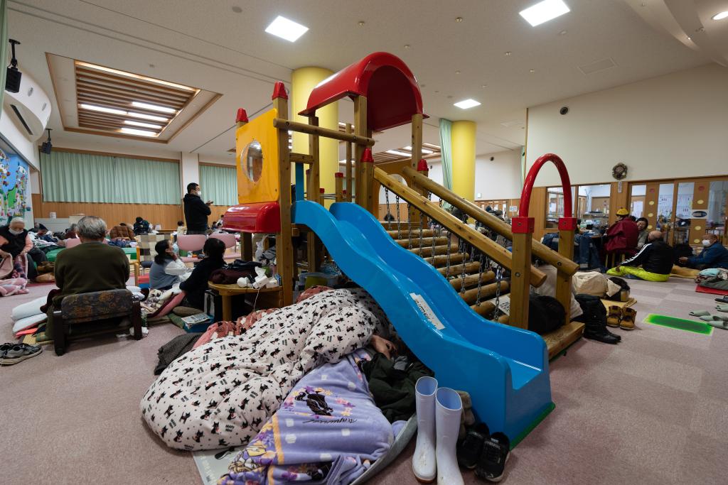 ↑1月3日,人们在日本石川县轮岛市一处容纳超700人的临时避难所内休息。 新华社记者 张笑宇 摄