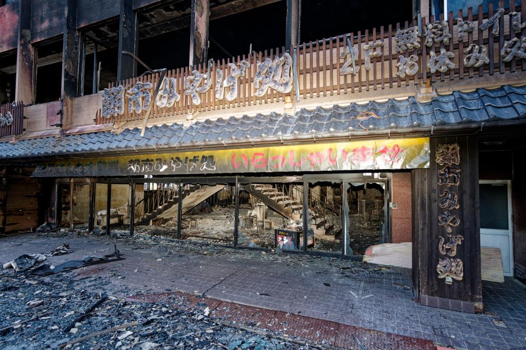 ↑1月4日,日本石川县轮岛市“轮岛早市”被大火烧成废墟。 新华社记者 张笑宇 摄