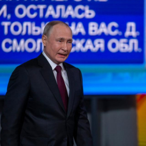 2023年12月14日,在俄罗斯莫斯科,俄罗斯总统普京步入“年度盘点”活动现场。新华社记者曹阳摄
