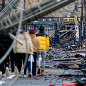 日本石川县轮岛市“轮岛早市”被地震引发的大火烧成废墟(1月4日摄)。