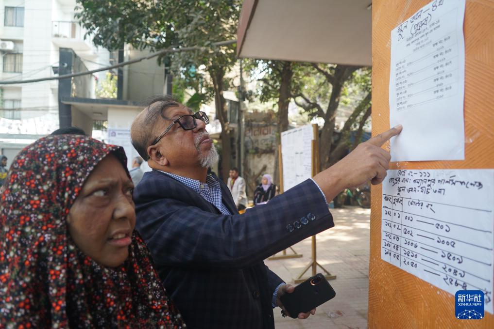 1月7日,在孟加拉国达卡的一个投票中心,选民查看投票信息。