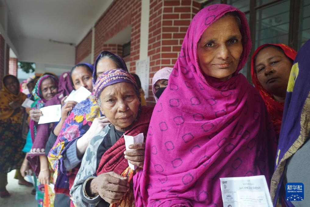 1月7日,在孟加拉国达卡的一个投票中心,人们排队等候投票。