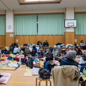 1月3日,人们在日本石川县轮岛市一处容纳超700人的临时避难所内休息。新华社记者张笑宇摄