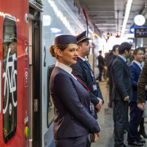 2022年3月19日,在塞尔维亚首都贝尔格莱德,乘务员在等待乘客上车。匈塞铁路塞尔维亚境内塞首都贝尔格莱德至中北部城市诺维萨德段(贝诺段)当日开通运营。(新华社发,王韡摄)