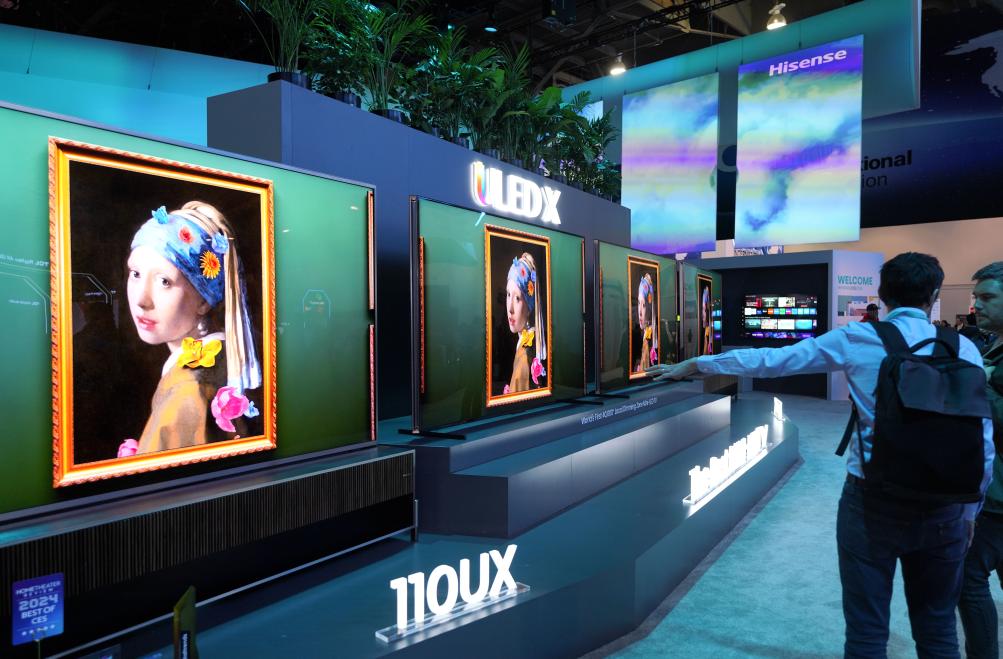 2024年1月11日,人们在美国拉斯维加斯消费电子展上参观海信公司展台。新华社记者吴晓凌摄