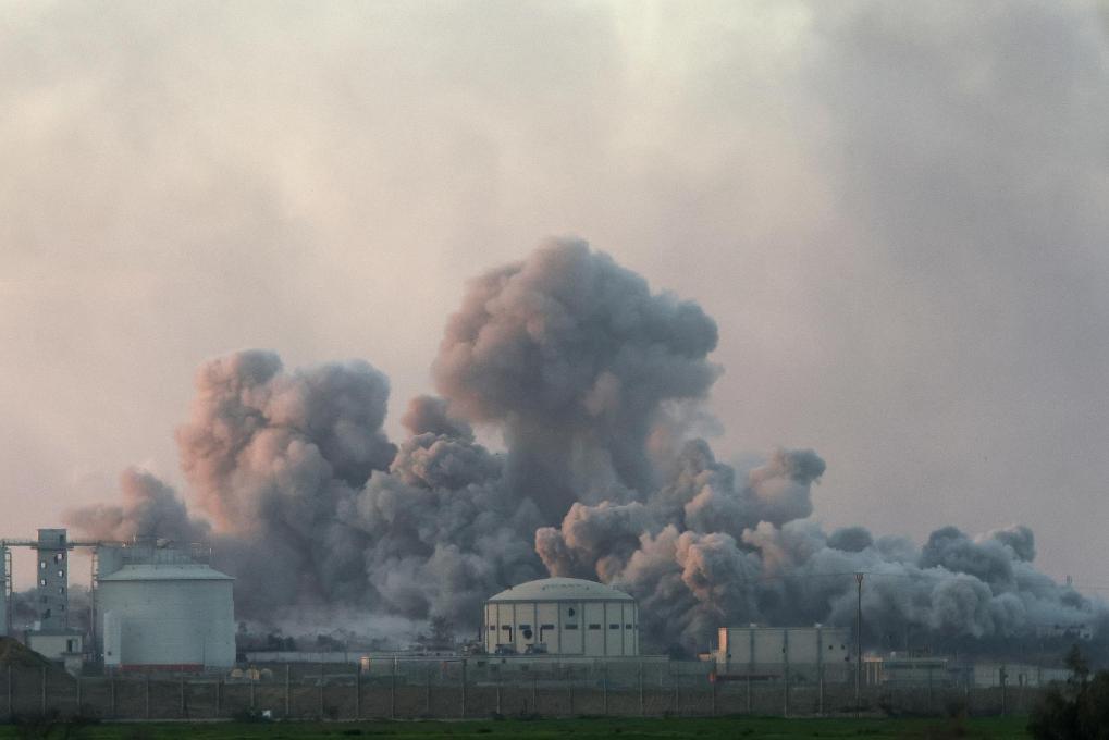 这是1月4日从加沙边境以色列一侧拍摄的加沙北部遭袭情况。新华社发(吉尔·科恩·马根摄)