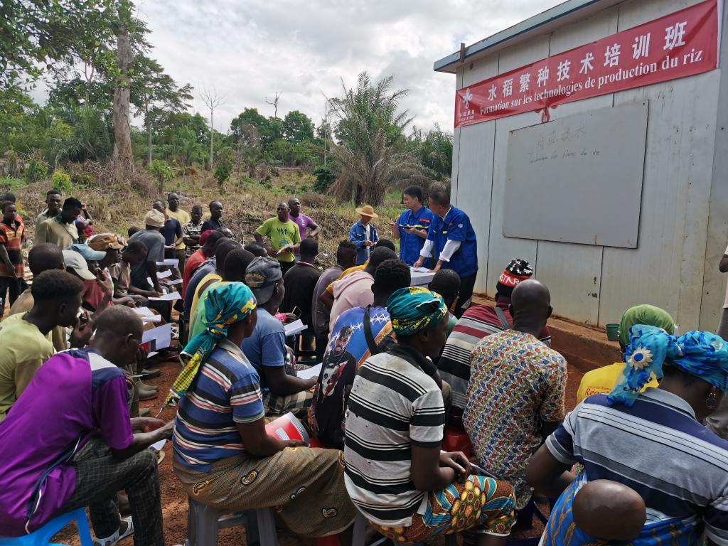 2023年4月29日,在科特迪瓦迪沃省的格格杜垦区,中国援科农业技术合作组专家为当地稻农培训(资料照片)。新华社发(中国援科特迪瓦农业技术合作组供图)