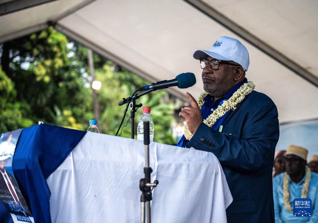 这是1月12日,科摩罗现任总统阿扎利在首都莫罗尼独立广场出席竞选活动。新华社记者 王冠森 摄