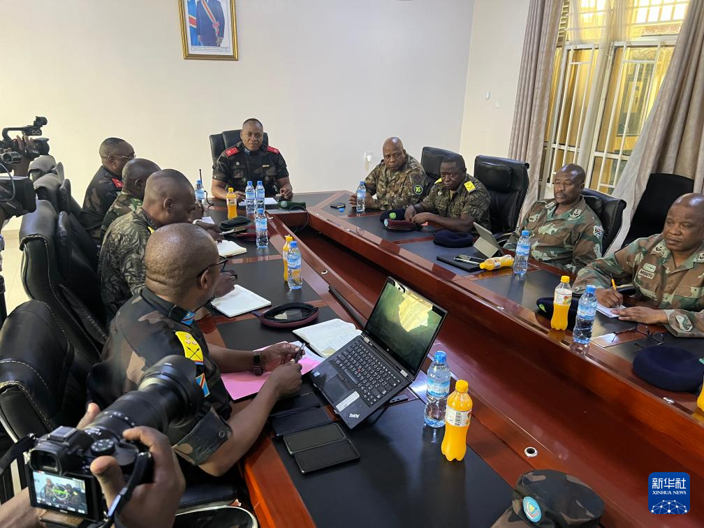 1月16日,在刚果(金)东部北基伍省首府戈马市,刚政府军与南部非洲发展共同体(南共体)组建的多国部队举行安全会议。新华社发(阿兰·乌亚卡尼摄)