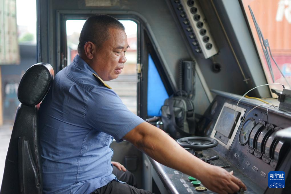 1月15日,在越南河内东英车站,中越班列司机在驾驶室内等候发车。