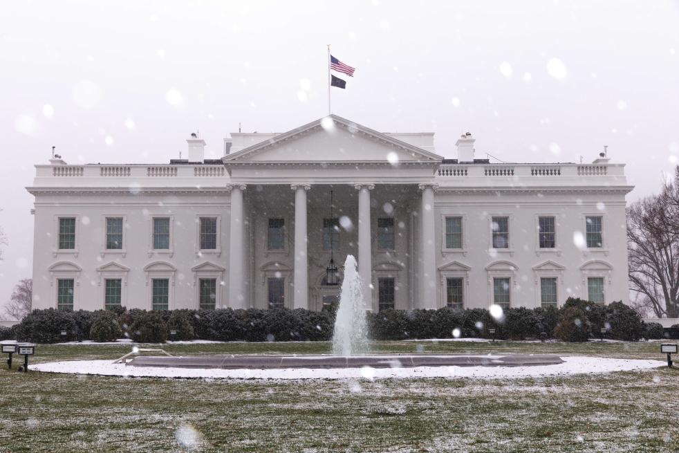 这是1月15日在美国首都华盛顿拍摄的雪中的白宫。新华社发(阿伦摄)