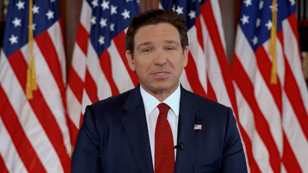 德桑蒂斯21日在社交媒体发表讲话的视频截图。