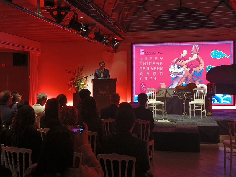 谈践在致辞中表示,春节是中华文化中最古老、最重要的传统节日,联合国大会也通过决议,将春节确定为联合国假日。龙年更是对中国人有着特殊的意义,龙是中国人的图腾,是吉祥的象征。他说,2024年是中荷建立“开放务实的全面合作伙伴关系”十周年,期待两国继续推进合作,造福世界。
