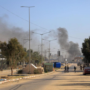 1月22日,加沙地带南部城市汗尤尼斯遭到以军攻击后升起浓烟。新华社发(里泽克·阿卜杜勒贾瓦德摄)