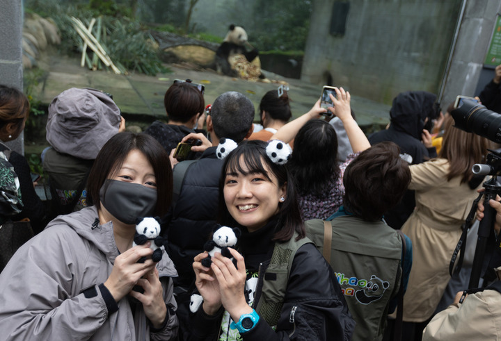 去年2月,旅日大熊猫“香香”回国,一大早东京上野动物园门口就聚集了上百位日本粉丝,与“香香”依依惜别。不到一年,日本粉丝们又忍不住组团来四川看望“香香”。
