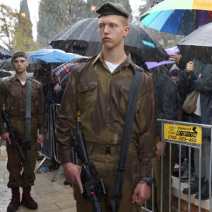 1月23日,在以色列特拉维夫的一处公墓,人们参加一名以色列士兵的葬礼。