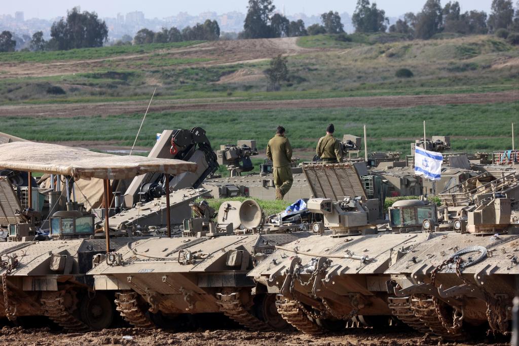 这是1月24日拍摄的加沙边境以色列一侧的以军部队。新华社发(吉尔·科恩·马根摄)