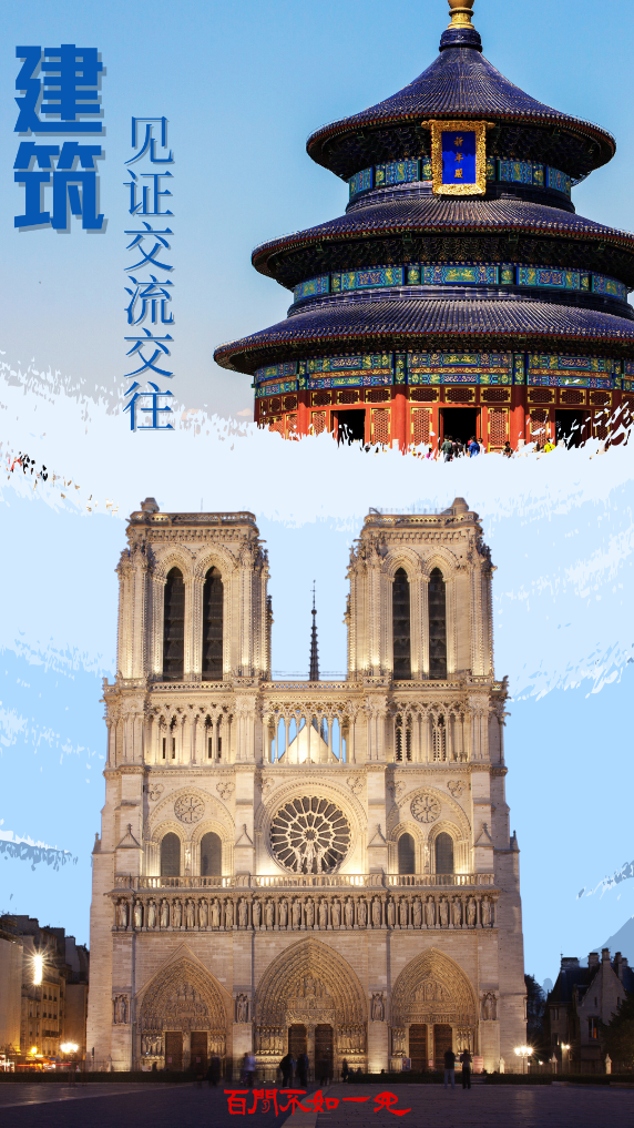 将冰雕建筑“天坛”和“巴黎圣母院”相连