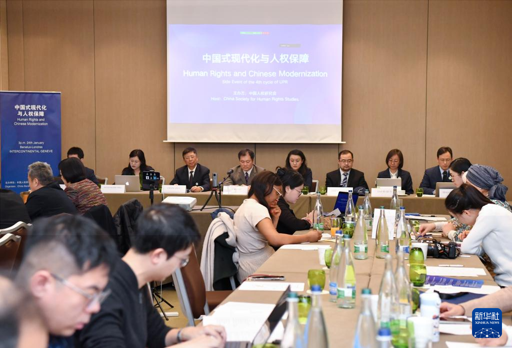 新华社日内瓦1月25日电(记者石松)在联合国人权理事会对中国启动第四轮国别人权审议之际,由中国人权研究会主办的“中国式现代化与人权保障”边会24日在瑞士日内瓦举行。来自国内外的专家学者、社会组织代表和媒体界代表50余人与会。会议通过网络平台向全球直播。