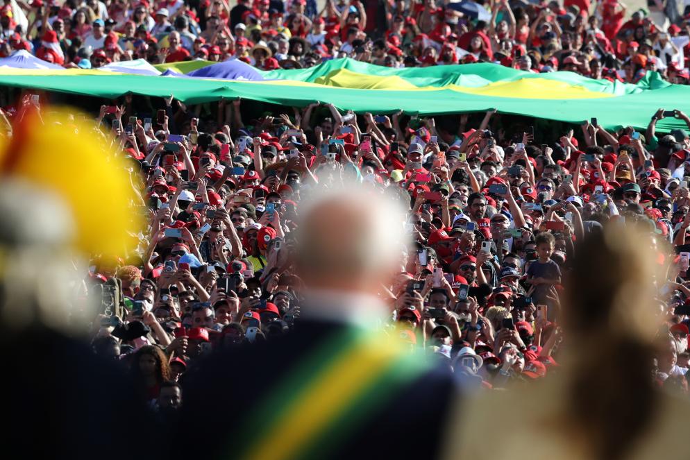 ↑2023年1月1日,在巴西首都巴西利亚,巴西总统卢拉在总统府“高原宫”参加就职仪式。