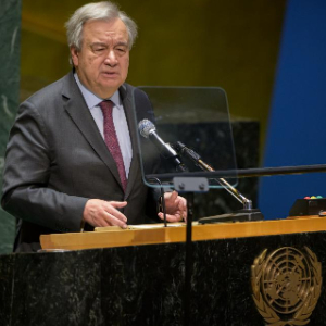 1月26日,在位于纽约的联合国总部,联合国秘书长古特雷斯在“国际大屠杀纪念日”纪念大会上发言。