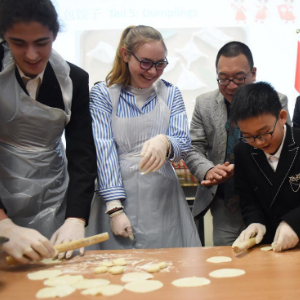 近期,风华中学30多名学生应邀访问奥地利,参观辰纳联邦文理中学、维也纳新城和维也纳,与奥方学生一起上课和联谊。活动当天,风华中学的学生围着红围巾,与辰纳联邦文理中学的学生合唱《新年快乐歌》,一起包饺子、吃饺子,喜迎龙年新春佳节。双方还互相介绍各自的家乡和学校,展示才艺,共同观看中国春节习俗视频。