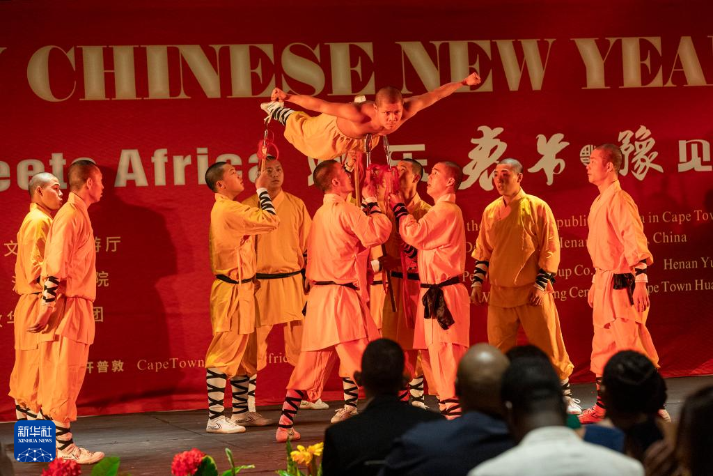 1月27日晚,中国演员在南非开普敦表演少林功夫。新华社发(弗雷德·巴克摄)