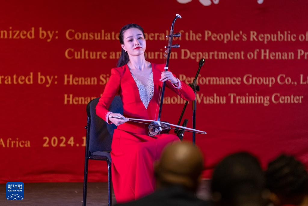 1月27日晚,中国演员在南非普敦演奏二胡。新华社发(弗雷德·巴克摄)pagebreakpagebreak