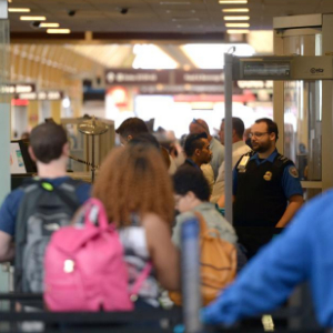 2015年6月2日,安检人员在美国华盛顿里根机场工作。新华社记者 殷博古 摄