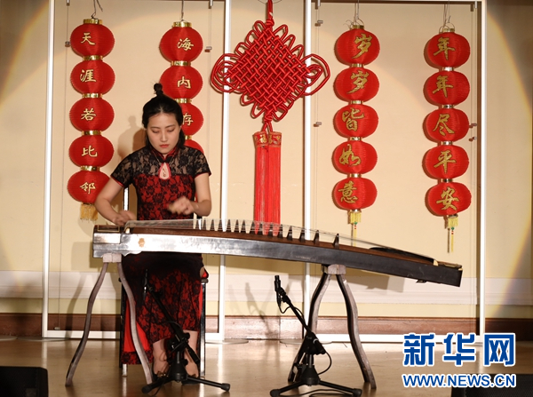 华沙大学的崔可表演古筝独奏《春到湘江》。记者 张琨 摄