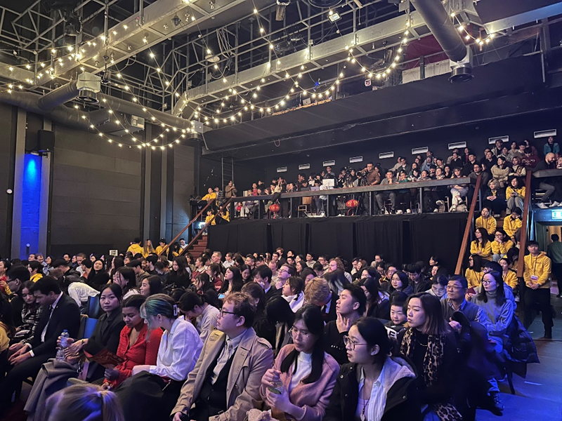 2月4日,全荷学生学者春节联欢会现场观众在观看表演。(全荷学联供图)