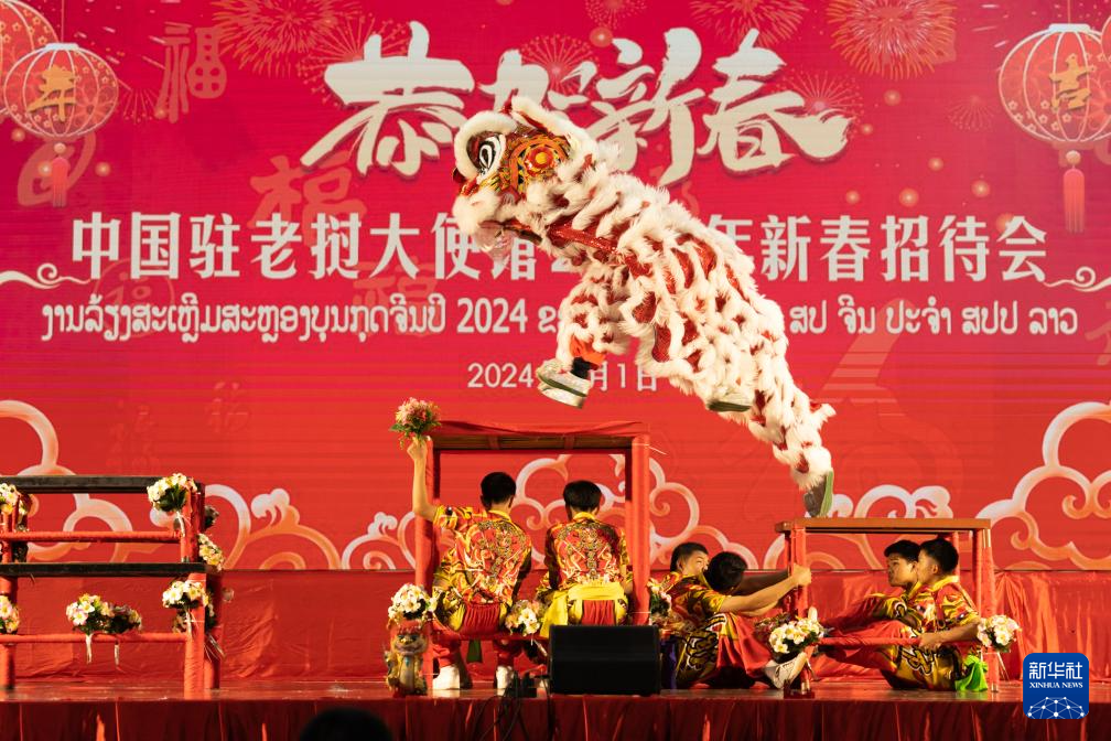 2月1日,中国驻老挝使馆举办2024年“温暖迎春·共庆中国年”华人华侨新春招待会。新华社发(凯乔摄)