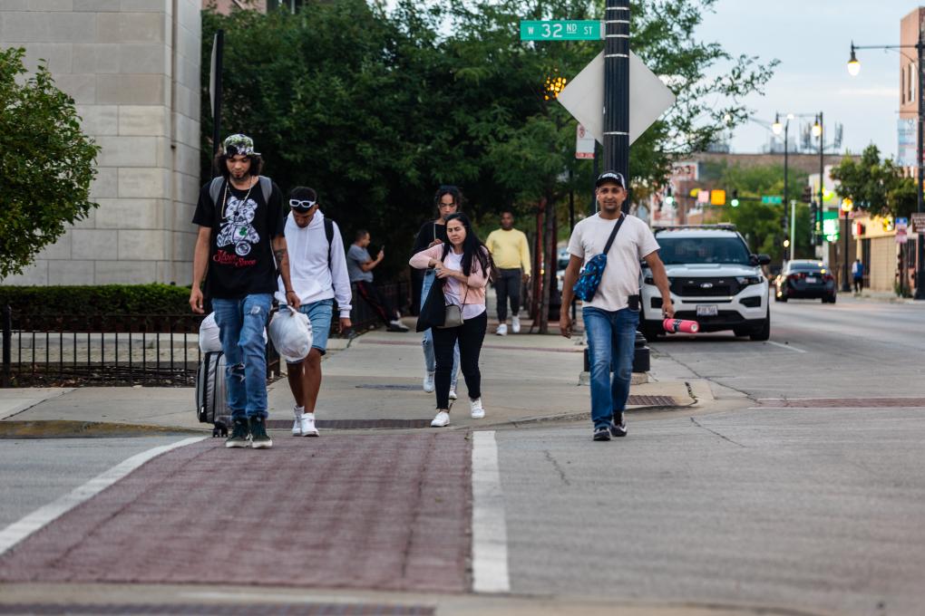 2023年8月17日,在美国伊利诺伊州芝加哥,一些移民因警察局居住空间有限另找住处。新华社发(文森特·约翰逊摄)