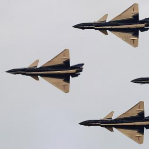 2月5日,中国空军八一飞行表演队在沙特阿拉伯首都利雅得进行飞行特技表演。
