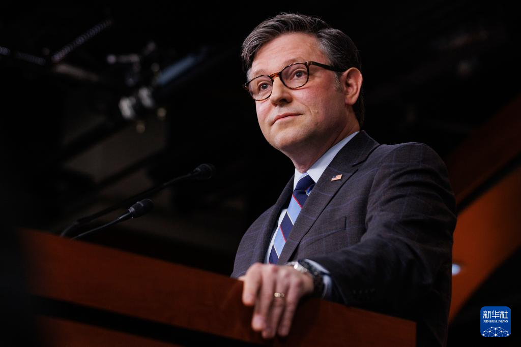 2月6日,在美国华盛顿,美国国会众议院议长迈克·约翰逊在弹劾投票前举行记者会。新华社发(亚伦摄)