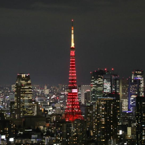2月9日晚,日本东京的地标性建筑东京塔点亮“中国红”,庆祝中国农历新年。