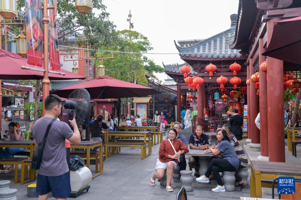2月4日,人们在印度尼西亚雅加达潘佐兰广场(又名“新中国城”)拍照、休闲。新华社记者 徐钦 摄