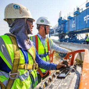 进入2月,泰国的天气开始炎热起来。记者在中泰高铁项目4-3标段施工现场看到,项目已进入架梁施工阶段,伴随着隆隆的机器轰鸣声,工人们正在忙着节段梁拼接作业。