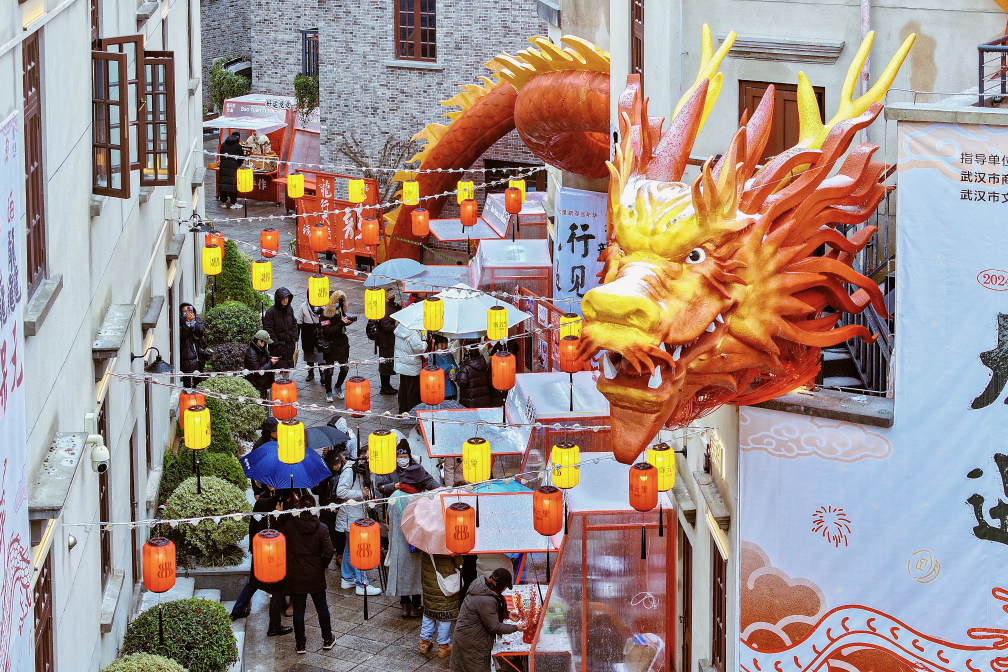 甲辰龙年伊始,雪后的湖北武汉晴空万里。龙元素装点市集灯会,国风年味弥漫大街小巷。随着传统文化回归、新兴业态布局,武汉春节消费市场呈现勃勃生机。