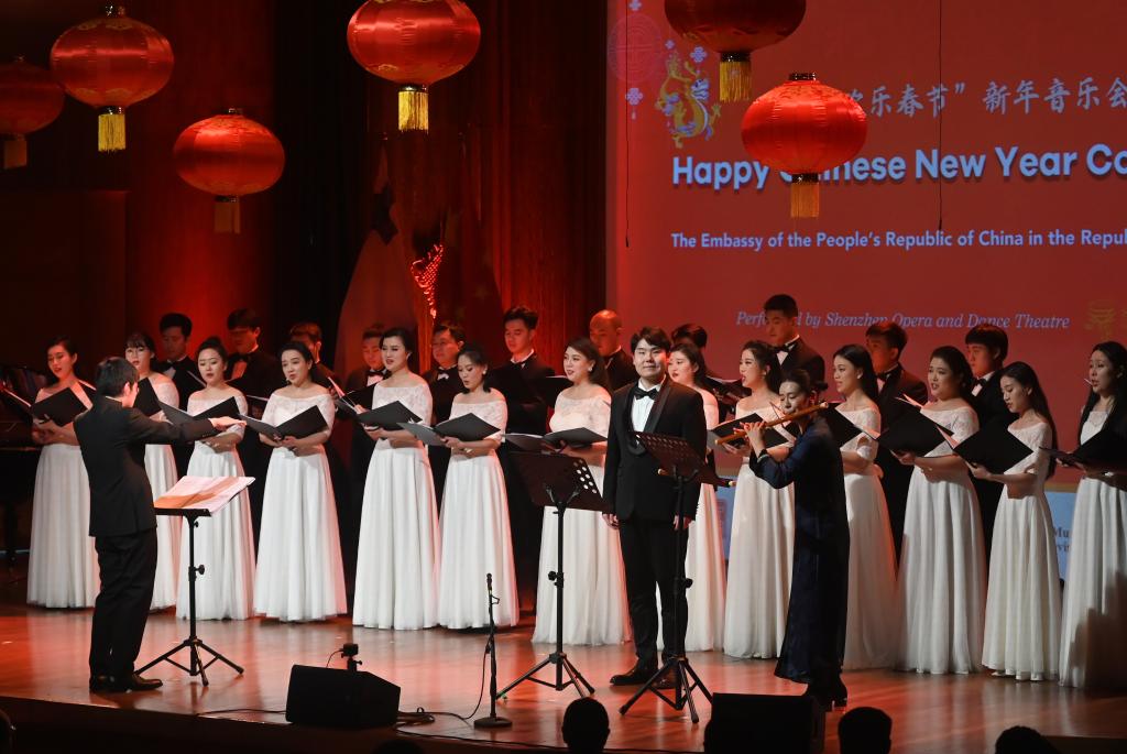 作为西班牙马德里“欢乐春节”系列庆祝活动的一部分,“中国新春音乐会”日前在马德里国家音乐厅举行。从《阳关三叠》等中国诗词合唱作品,到《敖包相会》《茉莉花》等中国民歌,再到《饮酒歌》等西方音乐选段,深圳歌剧舞剧院合唱团与民乐演奏家合力献上一台融合中西经典曲目的音乐会。